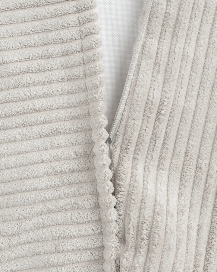 Powłoka zewnętrzna: Szeroki sztruks z certyfikatem OEKO-TEX® i GRS® (wyprodukowany z przetworzonych butelek PET, 100% poliester), Powłoka wewnętrzna: Włóknina polipropylenowa (standard OEKO-TEX®), Wypełnienie: 100% hipoalergiczne kulki styropianowe (EPS)