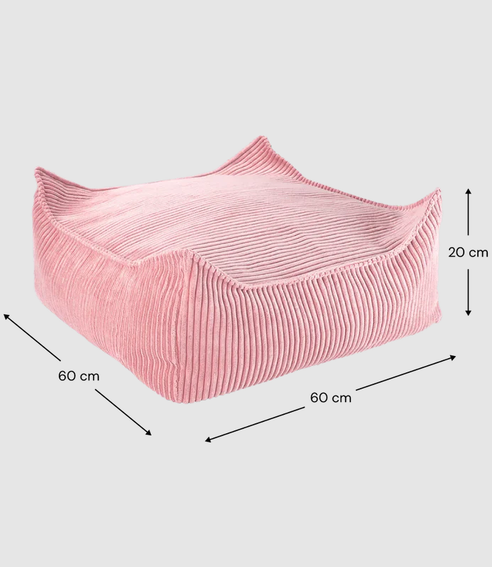 Kwadratowa pufa Pink Mousse to idealne dopełnienie fotela typu beanbag, wprowadzające wszechstronny i przytulny akcent do dziecięcej sypialni lub bawialni. Przemyślana z myślą o dzieciach, może służyć jako wygodny podnóżek, dodatkowe siedzisko lub przestrzeń do zabawy.