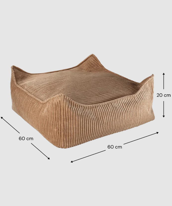 Kwadratowa pufa Toffee to idealne dopełnienie fotela typu beanbag, wprowadzające wszechstronny i przytulny akcent do dziecięcej sypialni lub bawialni. Przemyślana z myślą o dzieciach, może służyć jako wygodny podnóżek, dodatkowe siedzisko lub przestrzeń do zabawy.