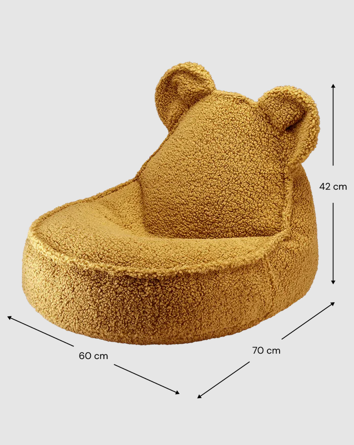 Dziecięca pufa Bear Maple dodaje przytulnego i zabawnego akcentu do każdego pokoju. Przemyślana konstrukcja sprawia, że ten fotel jest idealnym miejscem do czytania, relaksu i odpoczynku po dniu pełnym wrażeń. Wykonana z miękkich, wysokiej jakości materiałów, ta lekka i łatwa do przenoszenia pufa łączy komfort z wyjątkowym stylem – a urocze, małe uszy sprawiają, że po prostu nie można się jej oprzeć!