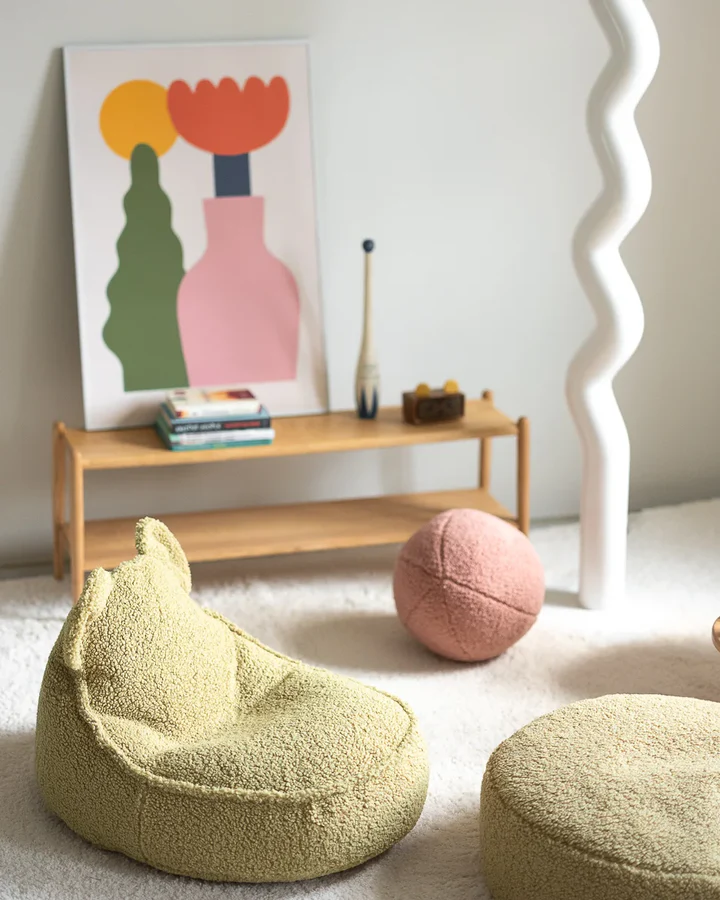 Dziecięca pufa Bear Matcha dodaje przytulnego i zabawnego akcentu do każdego pokoju. Przemyślana konstrukcja sprawia, że ten fotel jest idealnym miejscem do czytania, relaksu i odpoczynku po dniu pełnym wrażeń. Wykonana z miękkich, wysokiej jakości materiałów, ta lekka i łatwa do przenoszenia pufa łączy komfort z wyjątkowym stylem – a urocze, małe uszy sprawiają, że po prostu nie można się jej oprzeć!