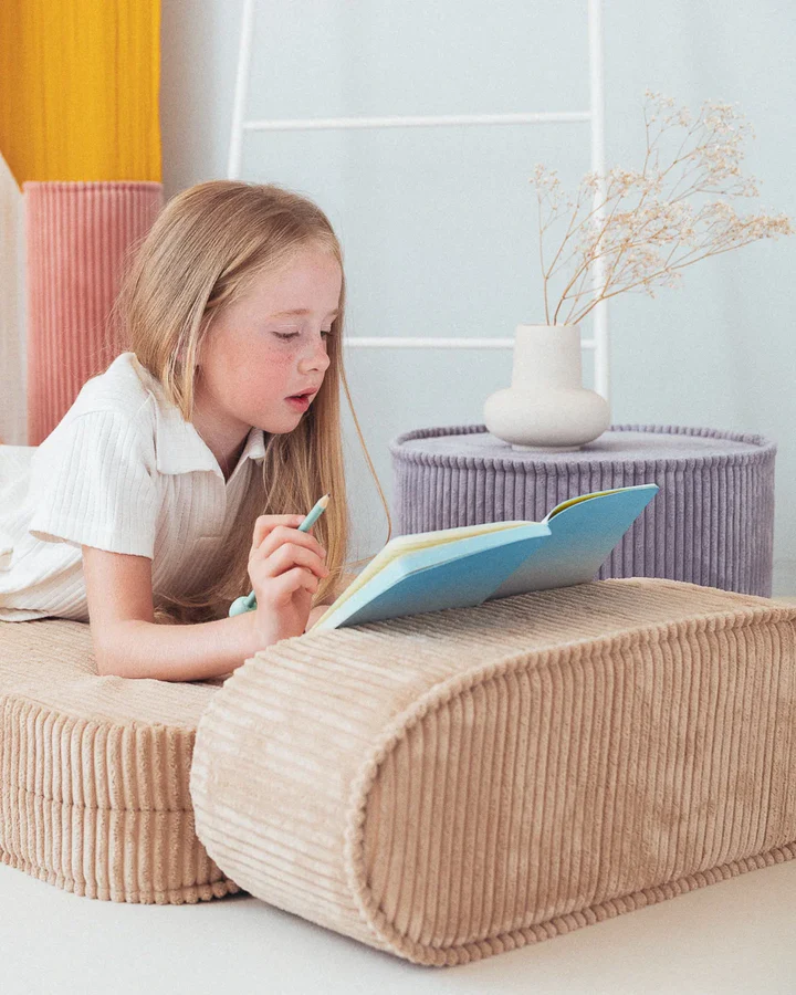 Dziecięca pufa Blueberry Blue to wszechstronny element wyposażenia, który idealnie sprawdzi się jako podnóżek, dodatkowe siedzisko lub kreatywny klockek do budowania domowych fortec. Wykonana z wysokiej jakości materiałów, oferuje maluchom przytulność i bogate wrażenia sensoryczne dzięki swojej unikalnej strukturze.