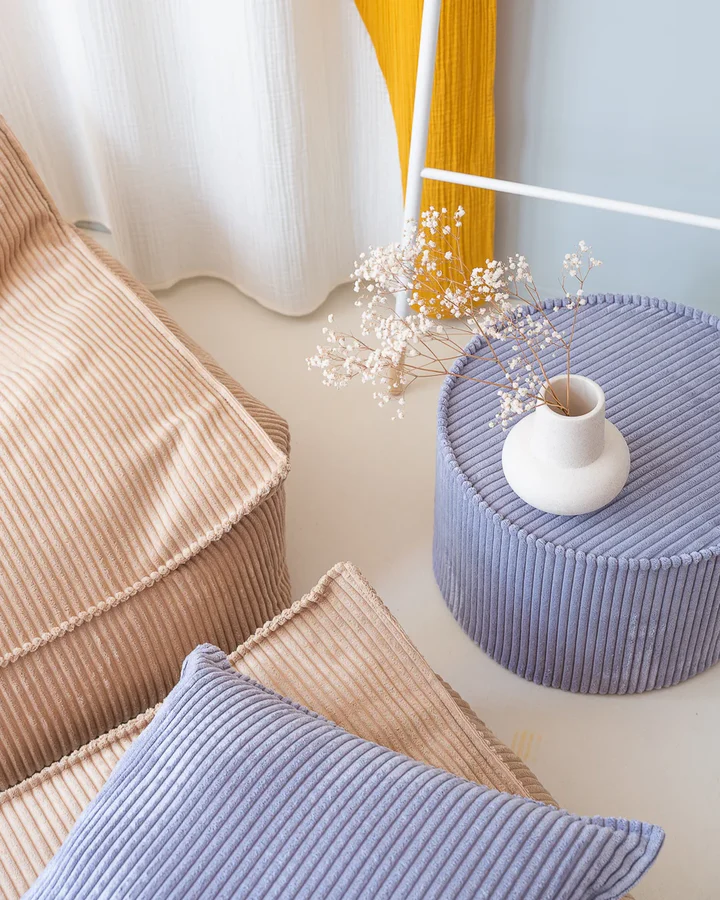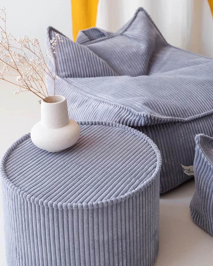 Ten przemyślany mebel jest niezwykle lekki i łatwy do przesuwania, co pozwala dzieciom na swobodną zabawę i samodzielne aranżowanie kącika wypoczynkowego. Obita ekologicznym, szerokim sztruksem w głębokim odcieniu jagodowego błękitu, pufa stanowi stylowe uzupełnienie puf sako i foteli, wnosząc funkcjonalność do każdego dziecięcego pokoju. Dedykowana dla dzieci w wieku od 3 do 7 lat.