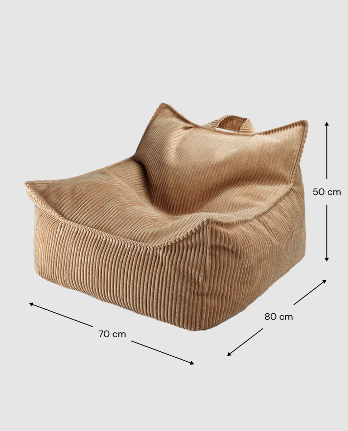 Fotel pufa Toffee to kultowy mebel dziecięcy, który perfekcyjnie łączy w sobie styl i codzienny komfort. Dzięki czystym liniom i miękkiej fakturze, ta sztruksowa pufa tworzy zachęcającą przestrzeń do odpoczynku w każdym pokoju.