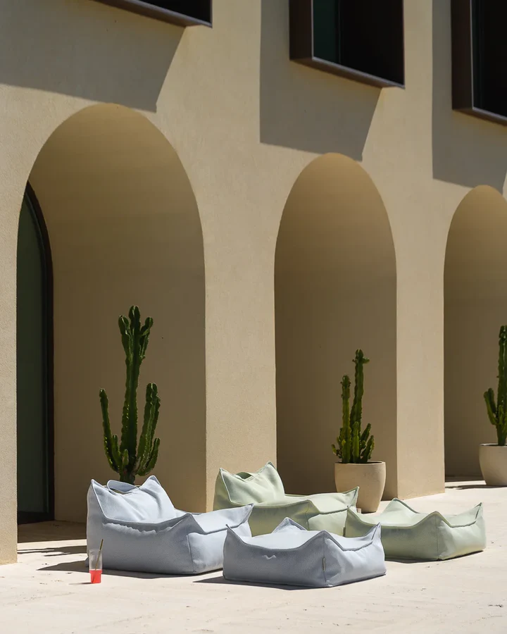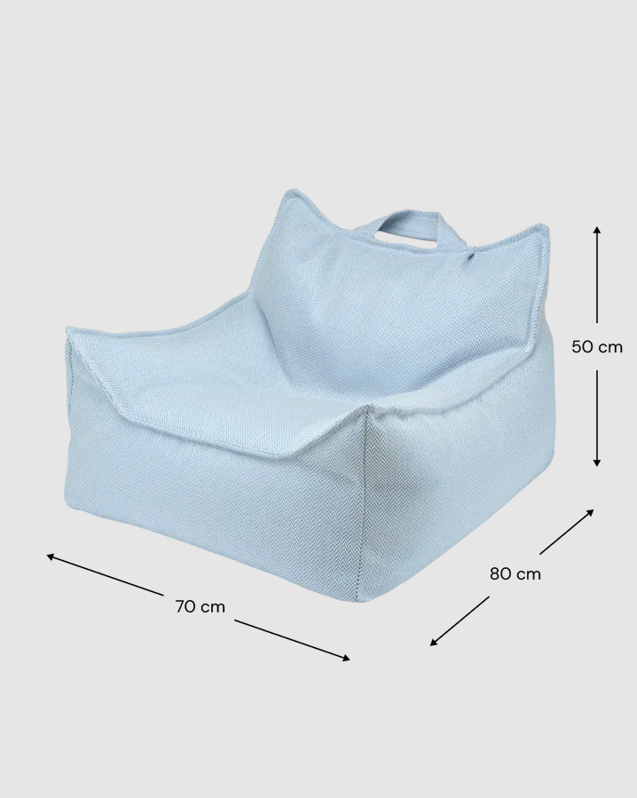 Pufa ogrodowa Azure to świeża odsłona naszego klasycznego projektu, teraz stworzona z myślą o przygodach na świeżym powietrzu. Wykonana z odpornej na warunki atmosferyczne tkaniny z certyfikatem OEKO-TEX®, jest niewrażliwa na chlor i promieniowanie UV, co sprawia, że idealnie sprawdza się podczas słonecznych dni i zabaw przy basenie.