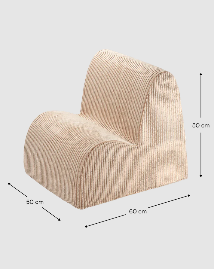 Fotel został zaprojektowany z myślą o najmłodszych – jest niezwykle lekki i łatwy do przesuwania, co pozwala dzieciom na samodzielne aranżowanie swojej przestrzeni zabawy. Obity ekologicznym, szerokim sztruksem w ciepłym odcieniu brązowego cukru, oferuje wyjątkową miękkość i wsparcie podczas codziennych aktywności. Dedykowany dla dzieci w wieku od 3 do 6 lat.